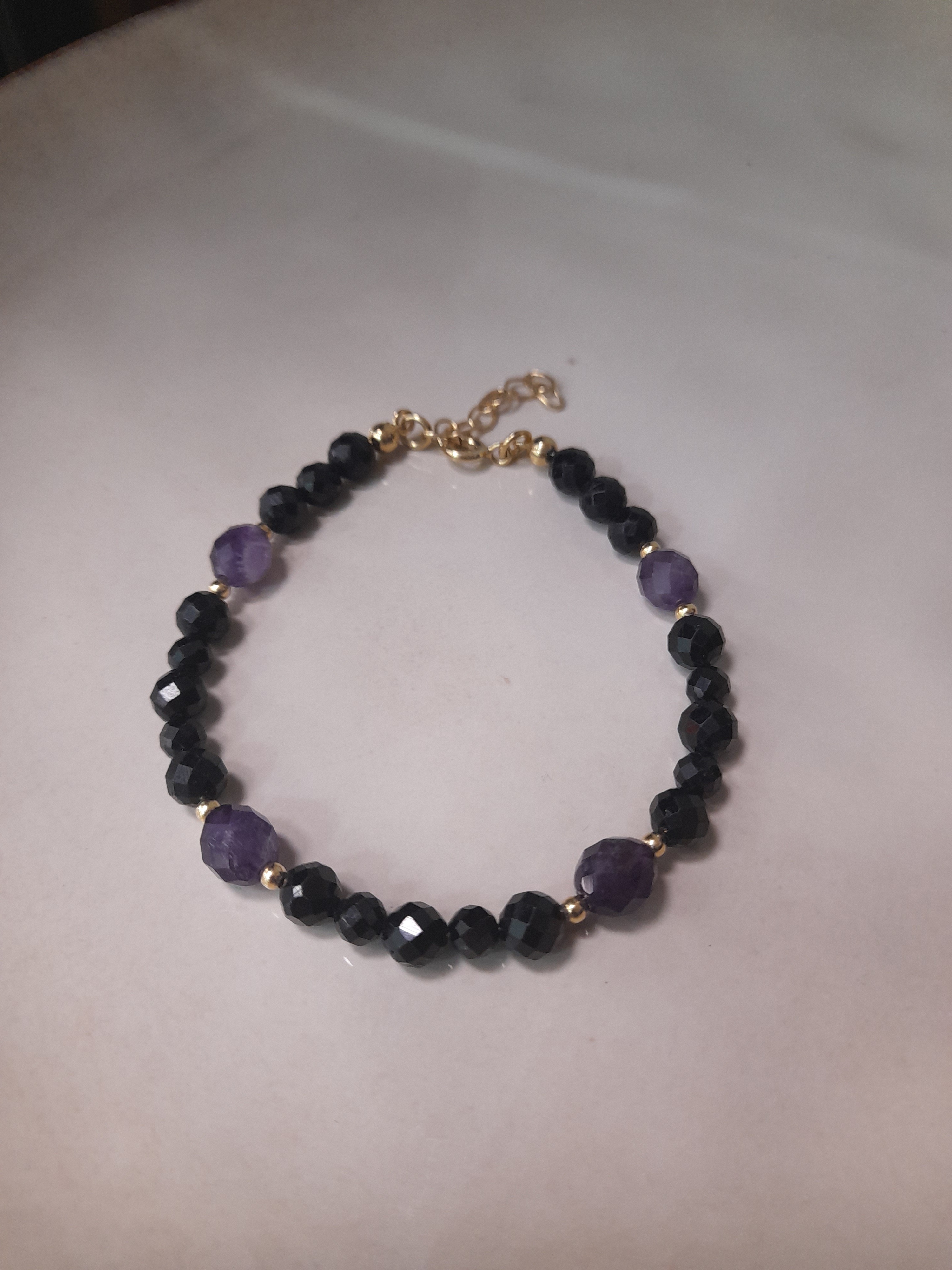AURA BRANSOLETKA Z TURMALINAMI I AMETYSTEM