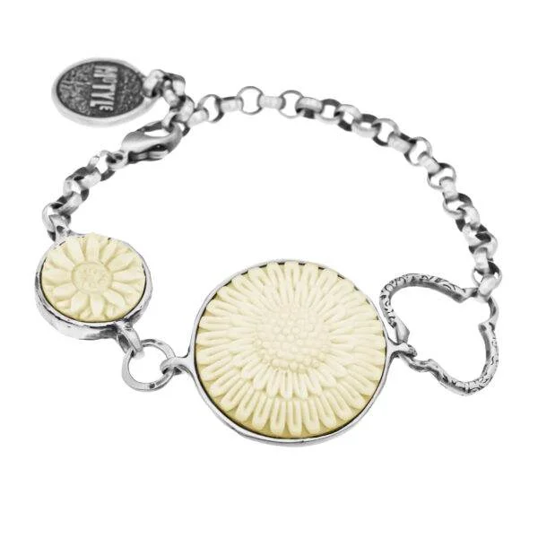 Bransoletka z kolekcji Biały Łabędź wykonana jest ręcznie ze srebra oksydowanego próby 925. Wykończenie srebra to antyczne srebro. Ręcznie rzeźbione elementy ozdobne z poroża jelenia mają średnicę ok. 2,4 cm oraz ok. 1,5 cm. Bransoletka posiada możliwość regulacji, a jej zapięcie to klasyczny karabińczyk. Bransoletkę można nosić dwustronnie.