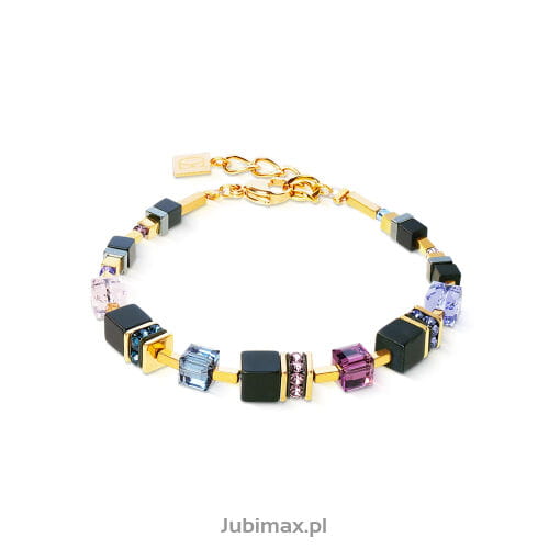 Bransoletka wykonana jest z kamieni naturalnych takich onyks, hematyt oraz szkła i kryształków. Zapięcie wykonane jest ze stali szlachetnej w kolorze żółtego złota. Jej długość to 18,5 cm + 3 cm przedłużka.