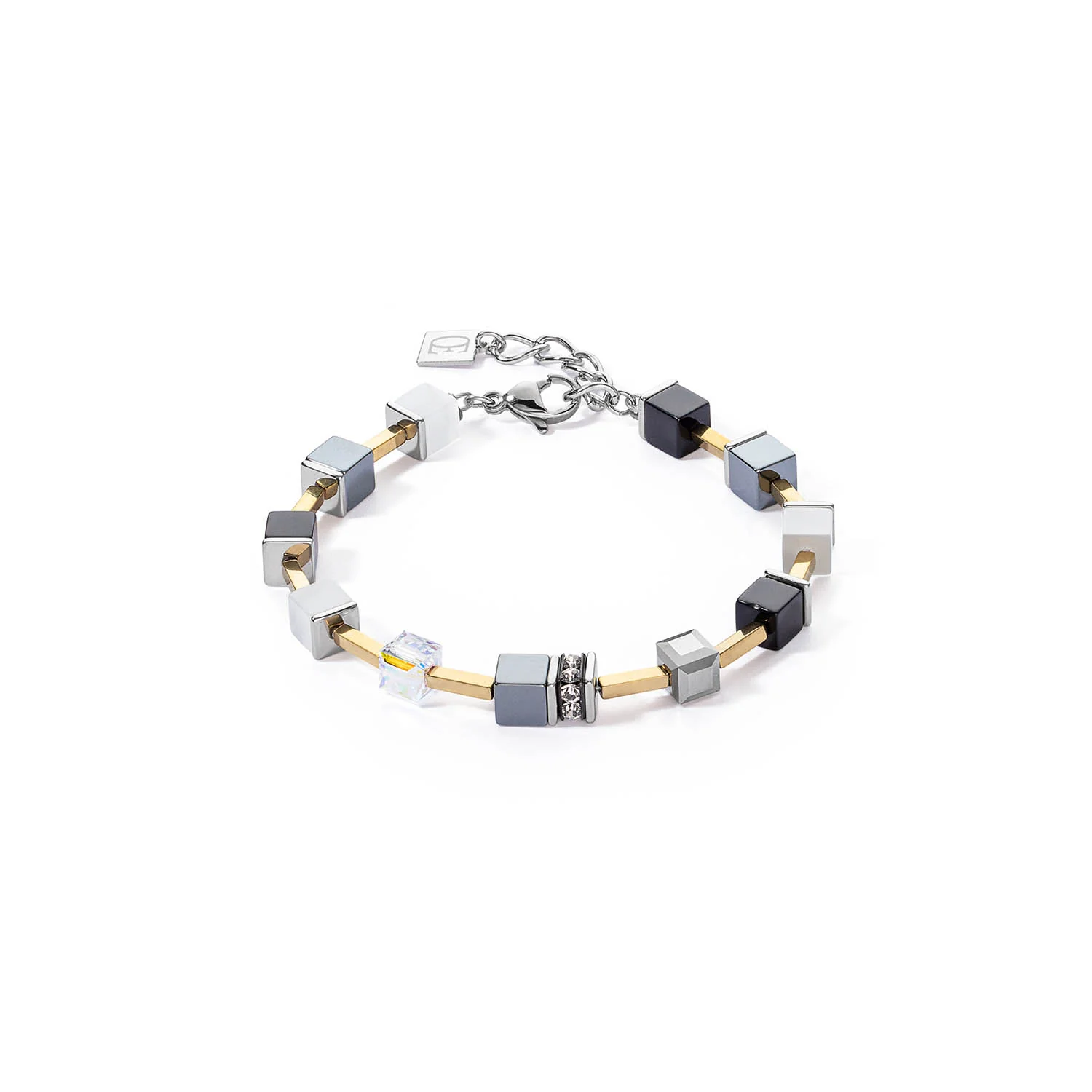 Bransoletka wykonana jest z kamieni takich jak: syntetyczne tygrysie oko, kryształ górski, polaris, hematyt z wykończeniem z tlenku tytanu, kryształów oraz pozłacanej stali. Zapięcie wykonane jest ze stali szlachetnej w kolorze srebra. Jej długość to 18,5 cm + 3 cm przedłużka.