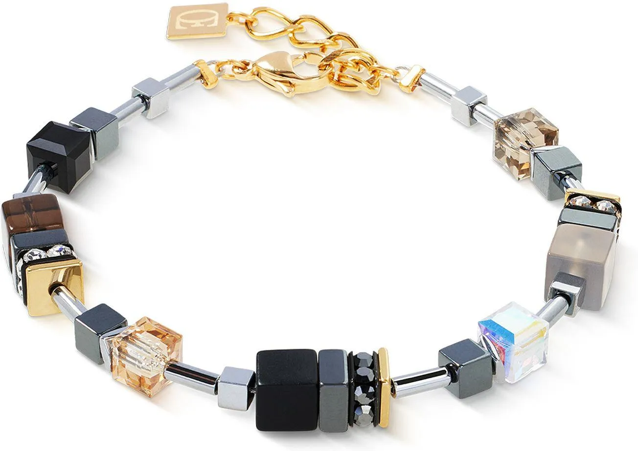 Bransoletka wykonana jest z kamieni takich jak: kwarc dymny, hematyt, kryształ górski, onyks, agat oraz szkło i kryształy. Stal szlachetna jest w kolorze złota. Długość bransoletki wynosi 19 cm + 3 cm przedłużka.