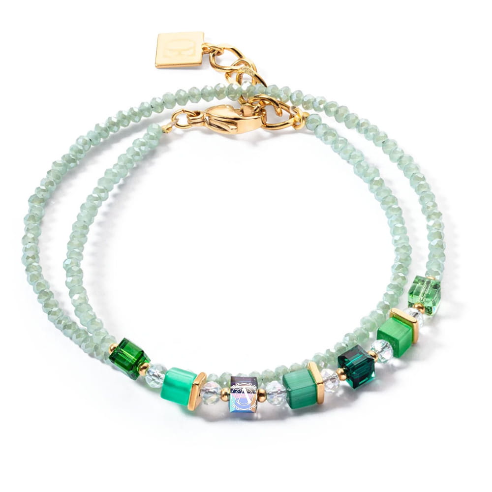 Bransoletka wykonana jest z kamieni naturalnych, szkła i kryształów. Zapięcie wykonane jest ze stali szlachetnej w kolorze żółtego złota. Jej długość to 17,5 cm + 3 cm przedłużka.