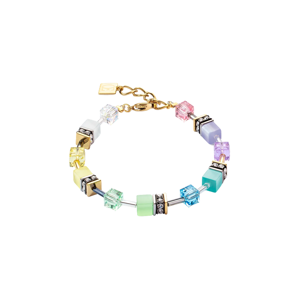 Bransoletka wykonana jest z kamieni naturalnych, kryształów i szkła. Zapięcie jest ze stali szlachetnej w kolorze żółtego złota. Jej długość to 18,5 cm + 3 cm przedłużka.