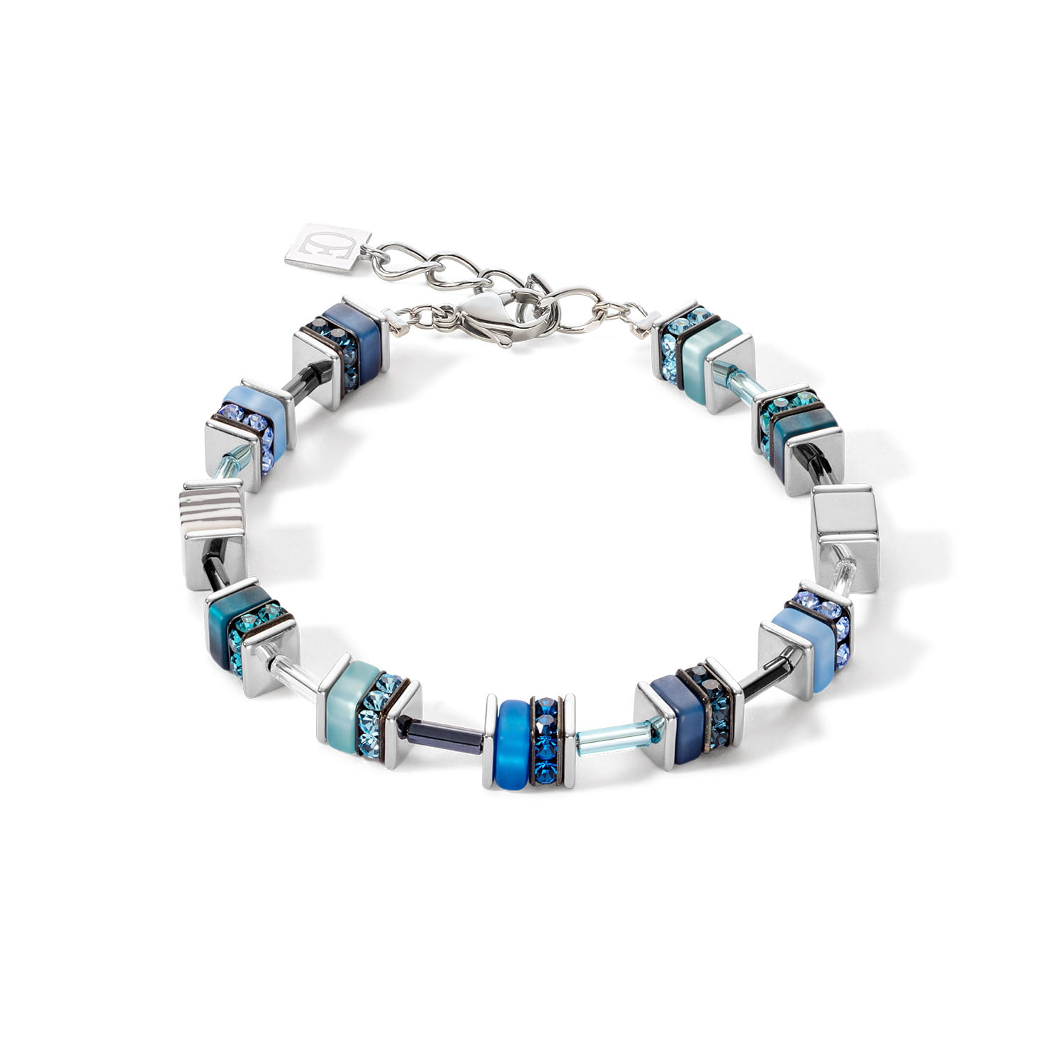 Bransoletka z kamieniami naturalnymi w kolorach srebra i niebieskiego. Zapięcie jest wykonane ze stali szlachetnej w kolorze srebra. Długość bransoletki to 19,5 cm + 6 cm przedłużka.