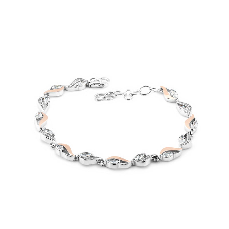 Wisiorek jest wykonany ze srebra rodowanego, płytki złota w próbie 375 oraz cyrkonii.