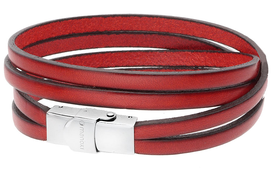 -bransoletka stal szlachetna 316L, rzemień naturalny