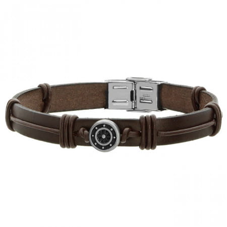 Skórzana bransoletka męska, idealnie pasująca do letnich stylizacji i nie tylko. Model wyposażono z praktyczne zapięcie ze stali szlachetnej oraz ozdobiono elementem przedstawiającym ster - symbol władzy.