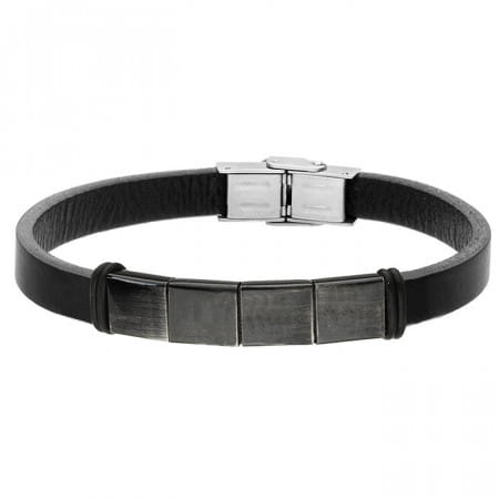 Elegancka bransoletka dla mężczyzn mających swój własny styl, lubiących wyróżniać się z tłumu. Wykonana została ze skóry naturalnej oraz stali szlachetnej zabarwionej za pomocą innowacyjnej technologii PVD. Dzięki swojemu minimalistycznemu designowi pasuje do niemal każdej stylizacji. Na czarnych elementach można wykonać niewielkie grawery.