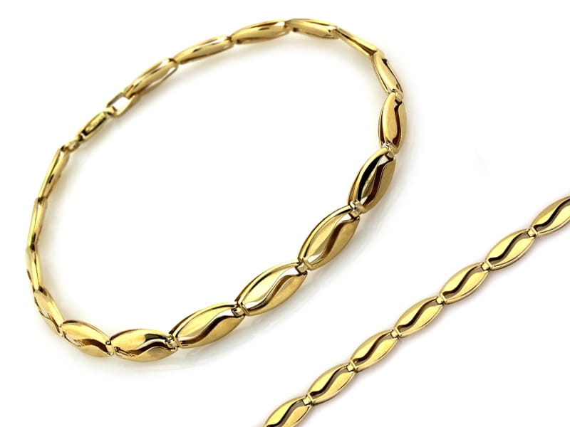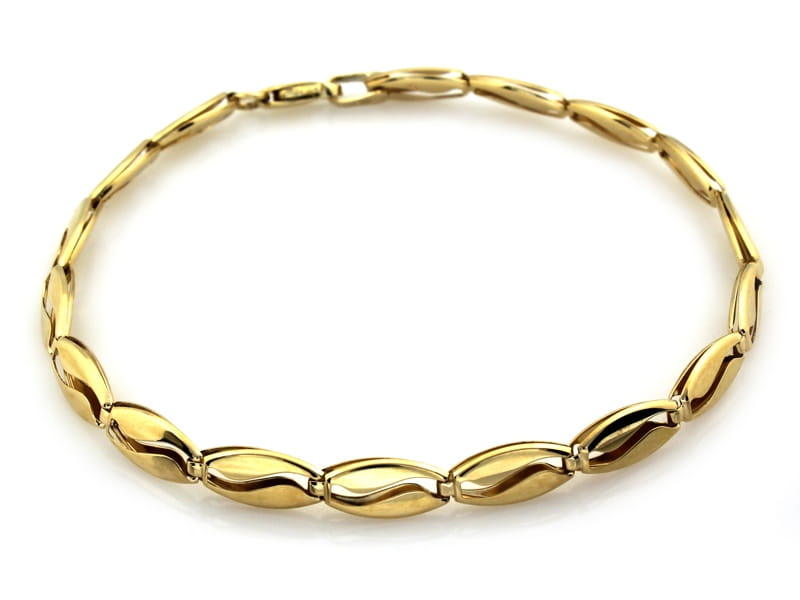 Elegancka i stylowa złota bransoletka próby 375 o regularnym wzorze.
