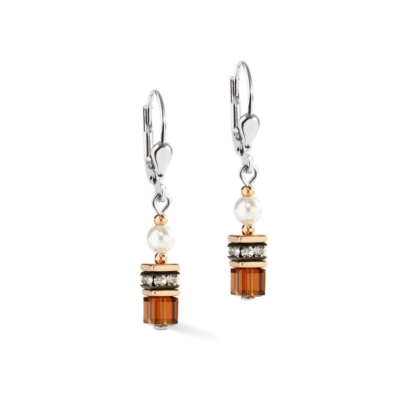 Kolczyki wykonane są z kamieni naturalnych, perły, kryształów, szkła i stali szlachetnej w srebrnym kolorze. Zapięcie kolczyka to bigiel klasyczny. Długość kolczyków to 3,4 cm.