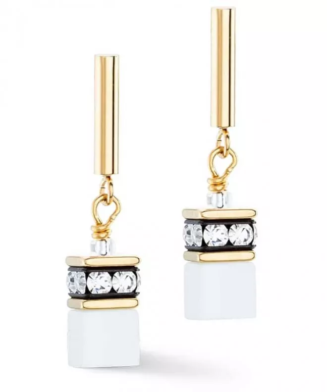 Kolczyki wykonane są z kamieni takich jak: kryształy górskie, tygrysie oko i stali szlachetnej w złotym kolorze.