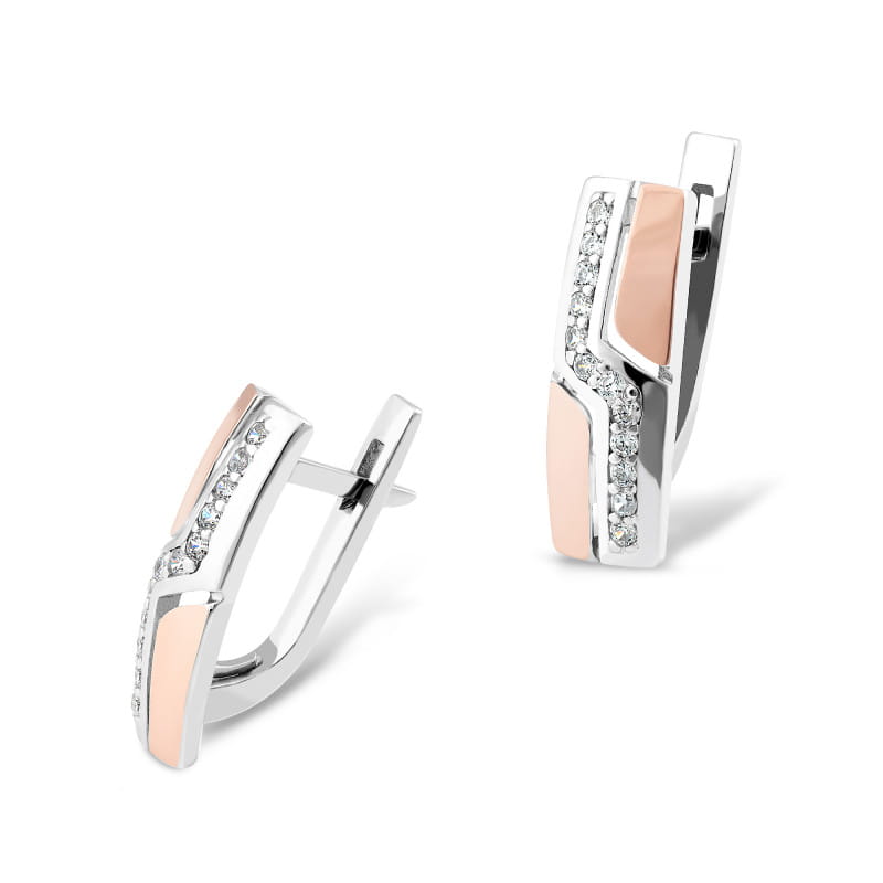 Kolczyki są wykonane ze srebra rodowanego, płytki złota w próbie 375 oraz białych cyrkonii.