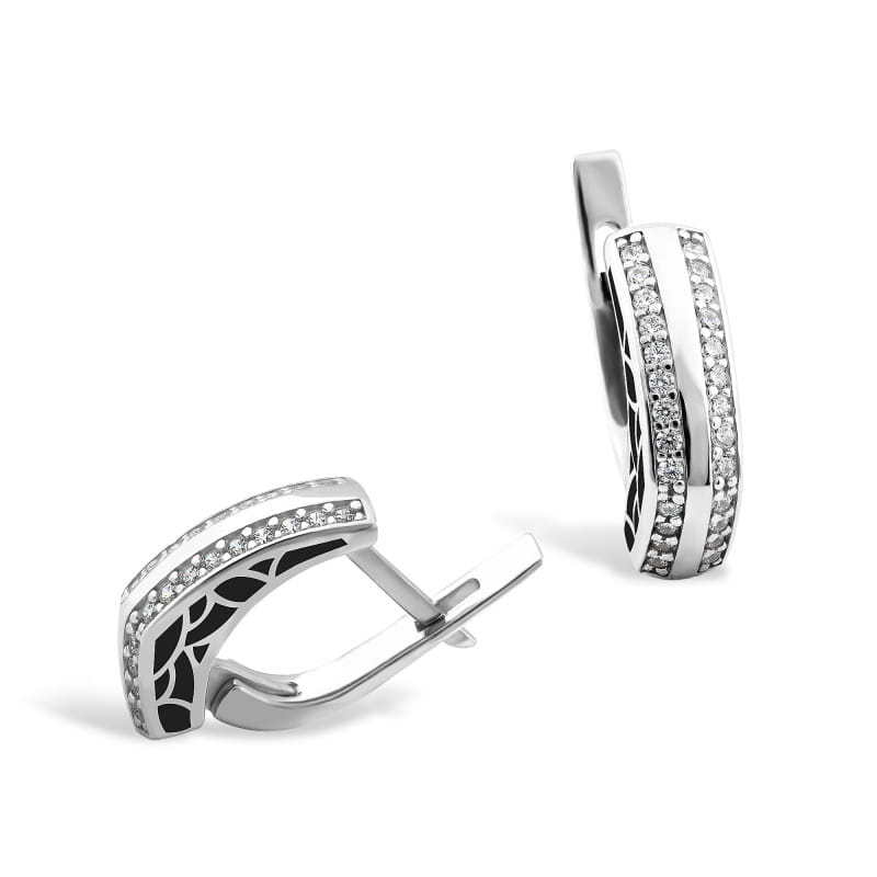 Kolczyki są wykonane ze srebra rodowanego oraz cyrkonii.