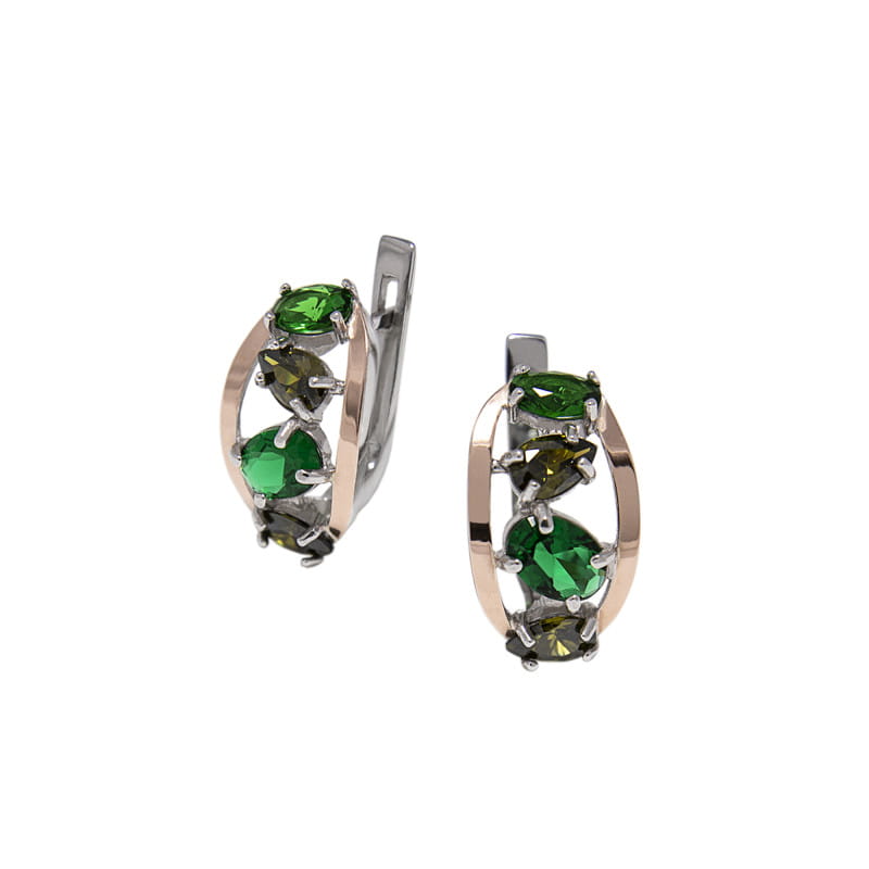Kolczyki wykonane są ze srebra rodowanego, płytki złota w próbie 375 oraz cyrkonii.
