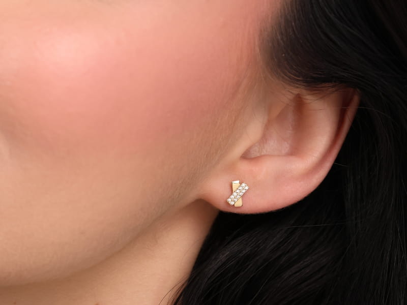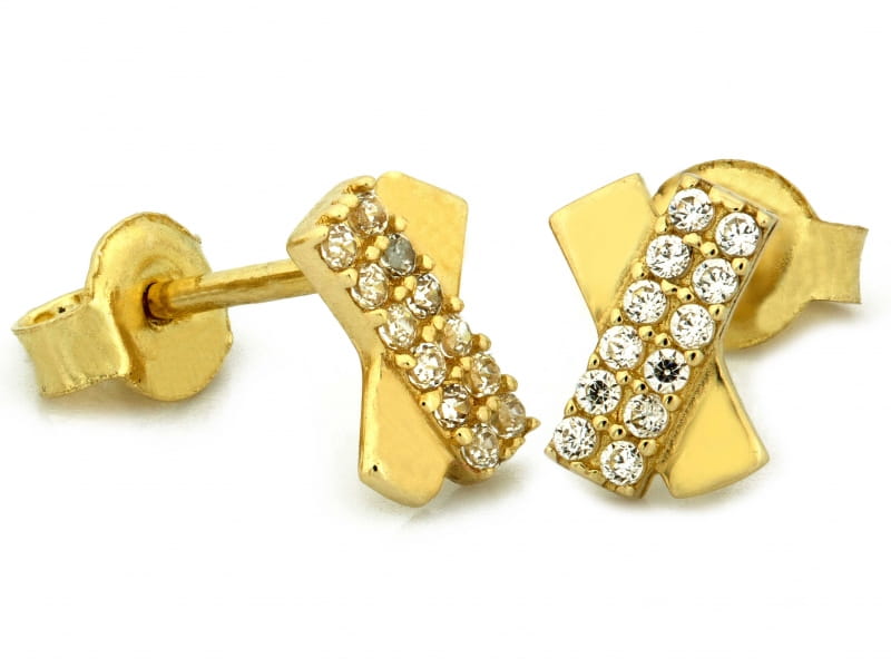 Kolczyki złote X przeplatane z cyrkoniami na sztyfcie