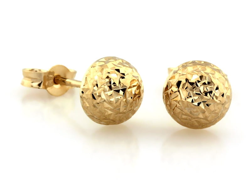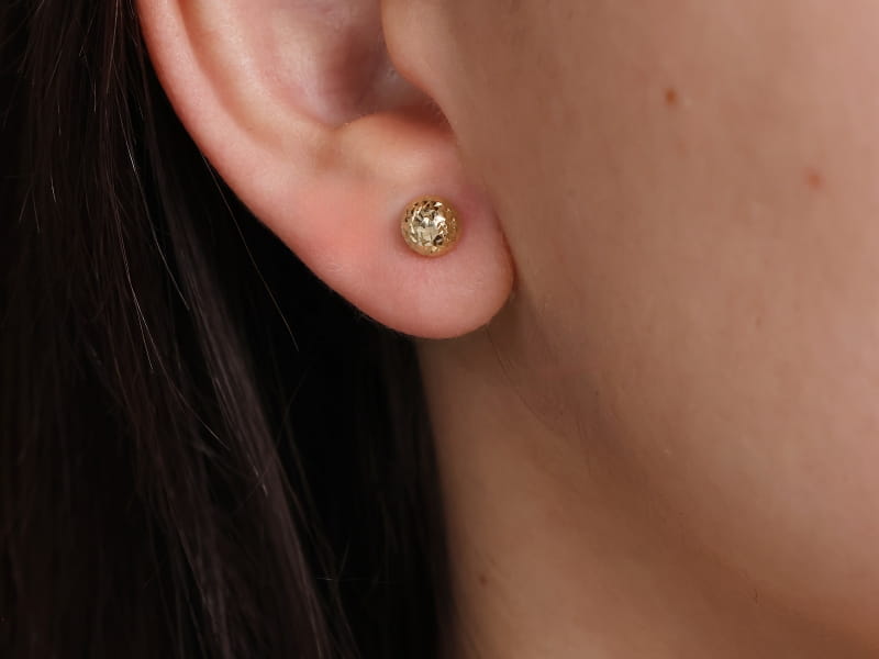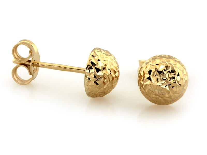 Kolczyki złote pół kulki przy uchu 6mm mm diamentowane