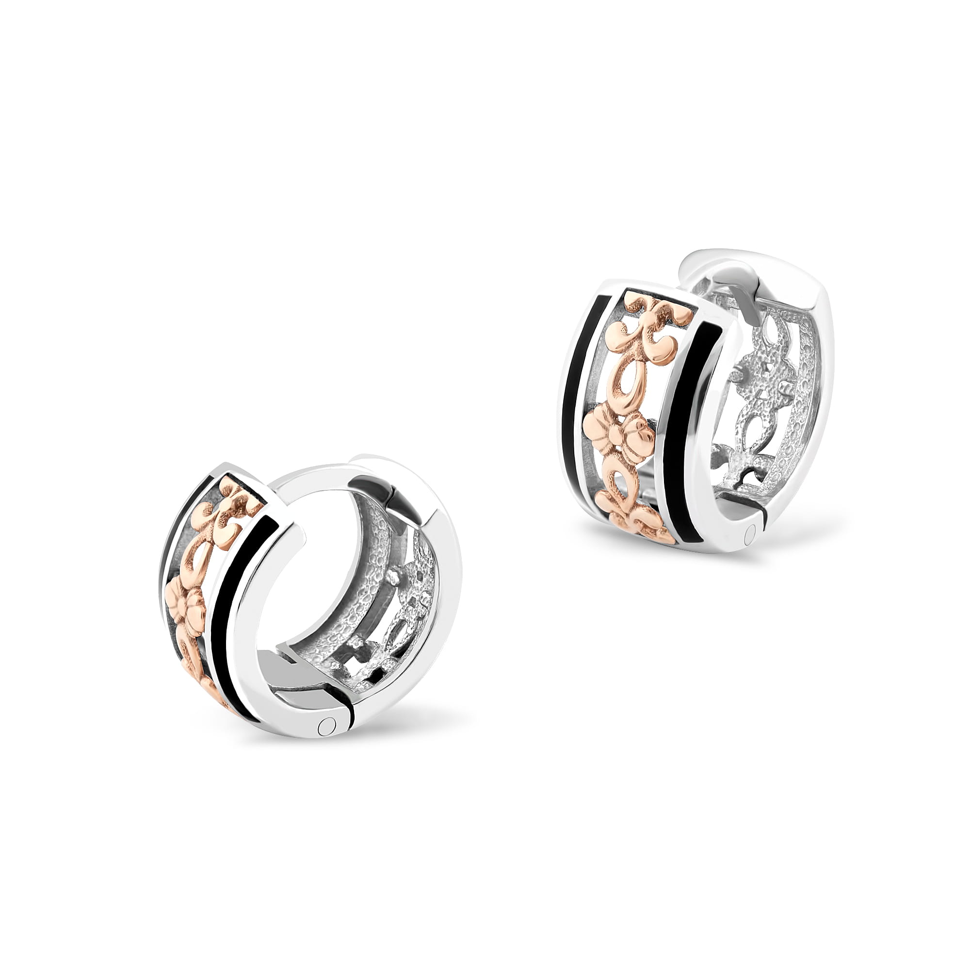 Kolczyki są wykonane ze srebra rodowanego, płytki złota w próbie 375 oraz cyrkonii.