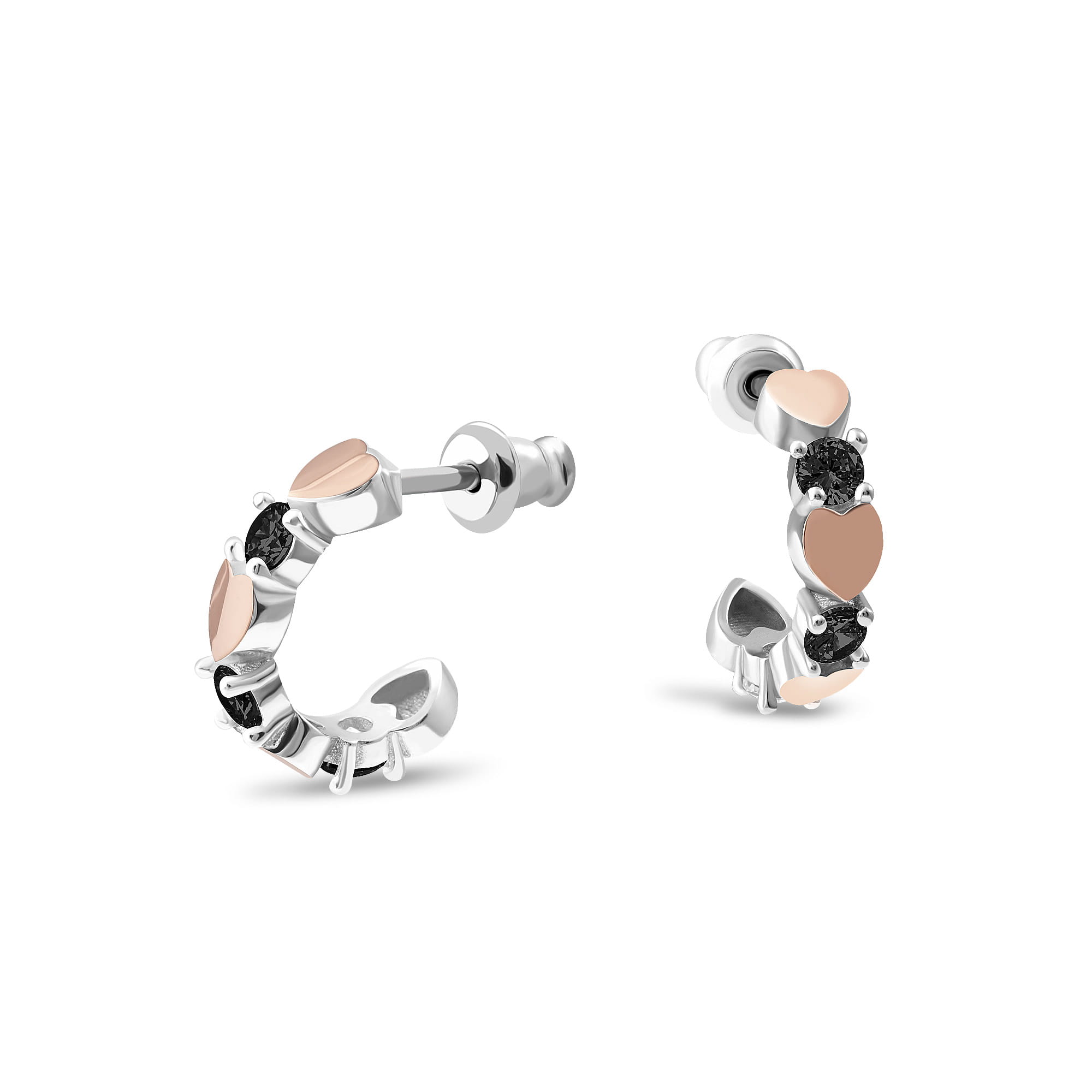 Kolczyki są wykonane ze srebra rodowanego, płytki złota w próbie 375 oraz cyrkonii w kolorze czarnym.