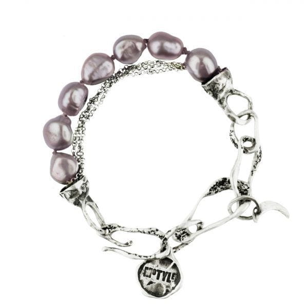 Bransoletka z kolekcji Constellation wykonana ręcznie ze srebra oksydowanego próby 925. Wykończenie srebra to antyczne srebro. Srebro uzupełnione jest w perły hodowlane, słodkowodne. Średnica pereł wynosi około 1 cm.