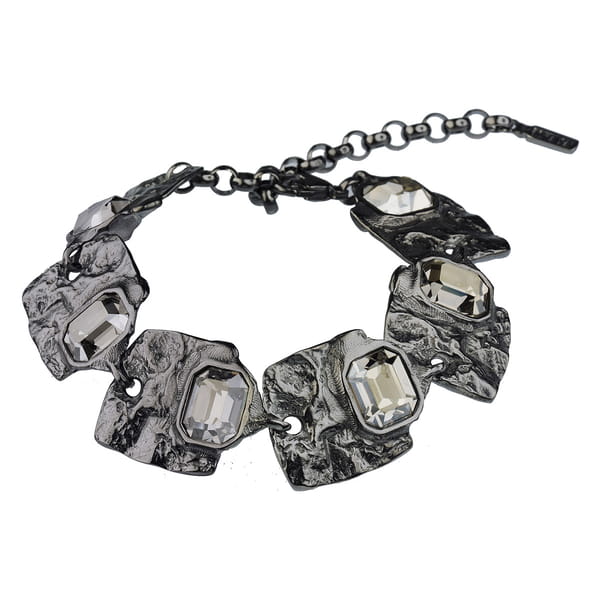 Kolekcja - Selene Bransoletka srebrna, rodowana próby 925 wykonana ręcznie, Wykończenie: czarny rod 24 k grafitowy blask Kryształ w kolorze Crystal Silver Shade, Każdy produkt posiada gwarancję marki w postaci srebrnego logo Motyle