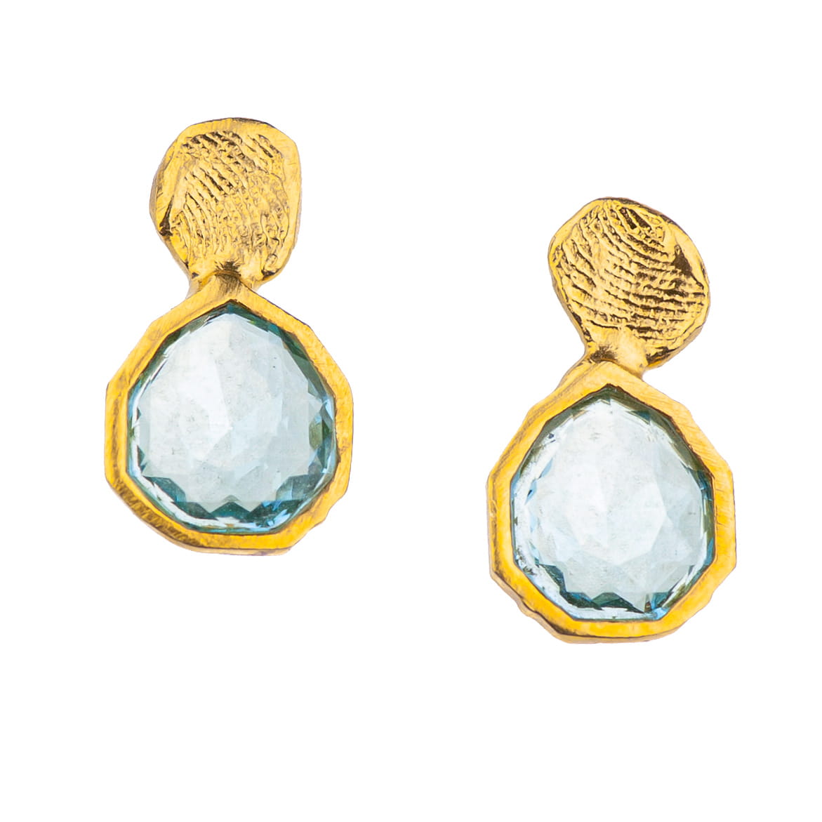 Kolczyki z kolekcji Botanica wykonane są ze srebra próby 925. Wykończenie srebra to “królewskie złoto 24K”. Kryształ jest w kolorze Aquamarine, a jego średnica to ok. 0,7 cm. Typ zapięcia to sztyft.