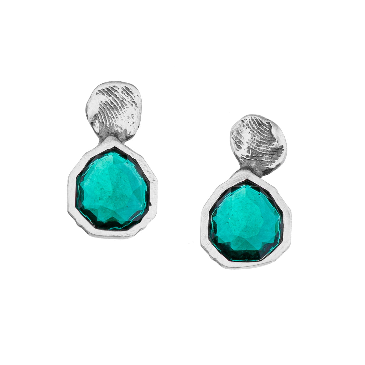 Kolczyki z kolekcji Botanica wykonane ręcznie ze srebra oksydowanego próby 925. Wykończenie srebra to “antyczne srebro”. Kryształ w kolorze Emerald. Średnica kryształu to ok. 0,7 cm. Typ zapięcia to sztyft.