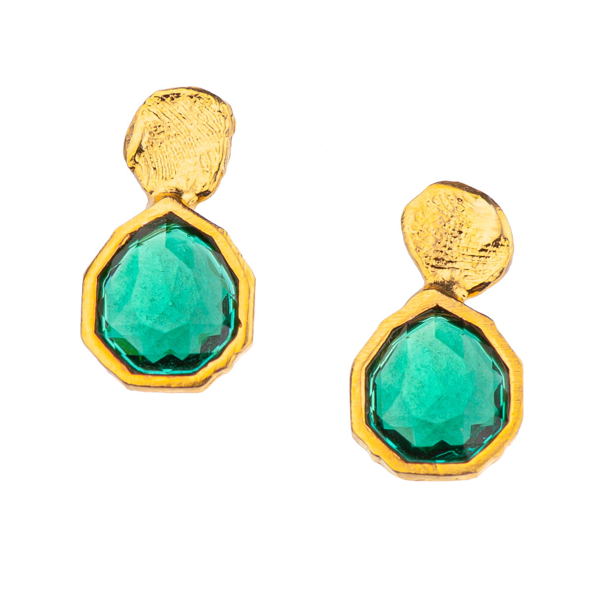 Kolczyki z kolekcji Botanica wykonane ręcznie ze srebra próby 925. Złocenie wykonane jest z “królewskiego złota 24K”. Kryształ jest w kolorze Emerald. Średnica kryształu to ok. 0,7 cm. Typ zapięcia to sztyft.