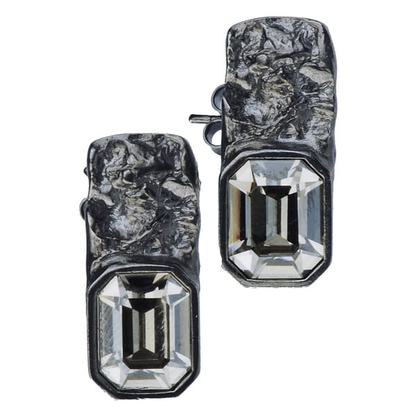 Kolekcja - Selene Kolczyki srebrne, rodowane próby 925 wykonane ręcznie, Wykończenie: czarny rod 24 k grafitowy blask Kryształ w kolorze Crystal Silver Shade, Wielkość kolczyka wynosi ok. 2cm/1cm Wielkość kryształu wynosi ok. 1,5cm/1cm Każdy produkt posiada gwarancję marki w postaci srebrnego logo Motyle