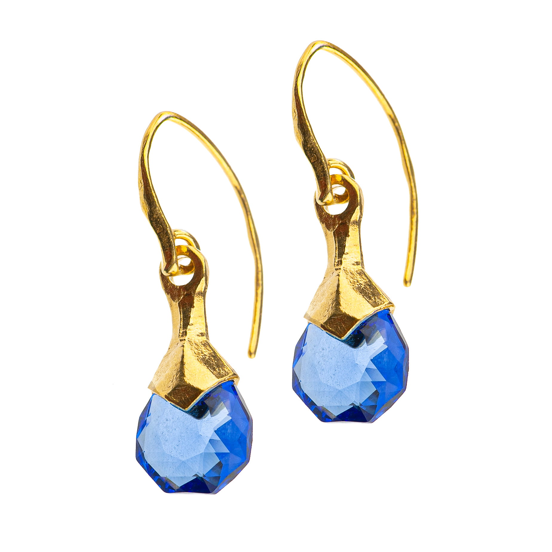 Kolczyki wykonane ręcznie w srebrze próby 925. Złocenie to „królewskie złoto 24K”. Kryształ o średnicy 1 cm. Całkowita długość kolczyka to 3,5 cm.