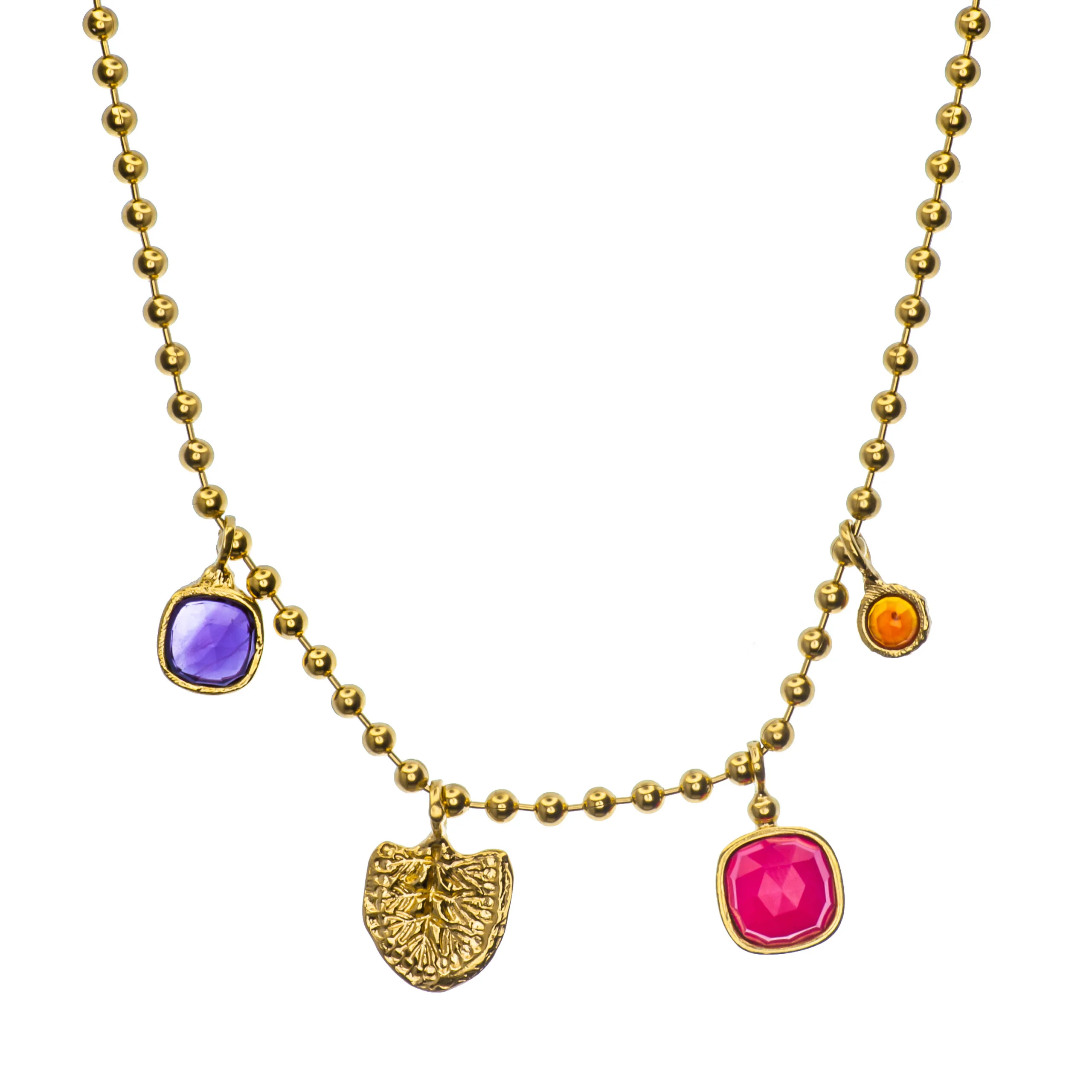 Wykończenie srebra: królewskie złoto 24K Kamienie naturalne: – ametyst – agat w kolorze fuksji – karneol