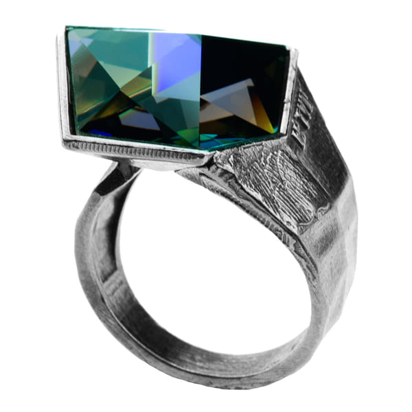 Pierścionek Motyle z kolekcji Aurora został stworzony przez inspirację mieniącą się wszystkimi kolorami zorzą polarną. Biżuteria pozwala zatrzymać na dłużej to przepiękne zjawisko dzięki zamkniętym w srebrze kryształom, które odwzorowują barwy zorzy polarnej.
