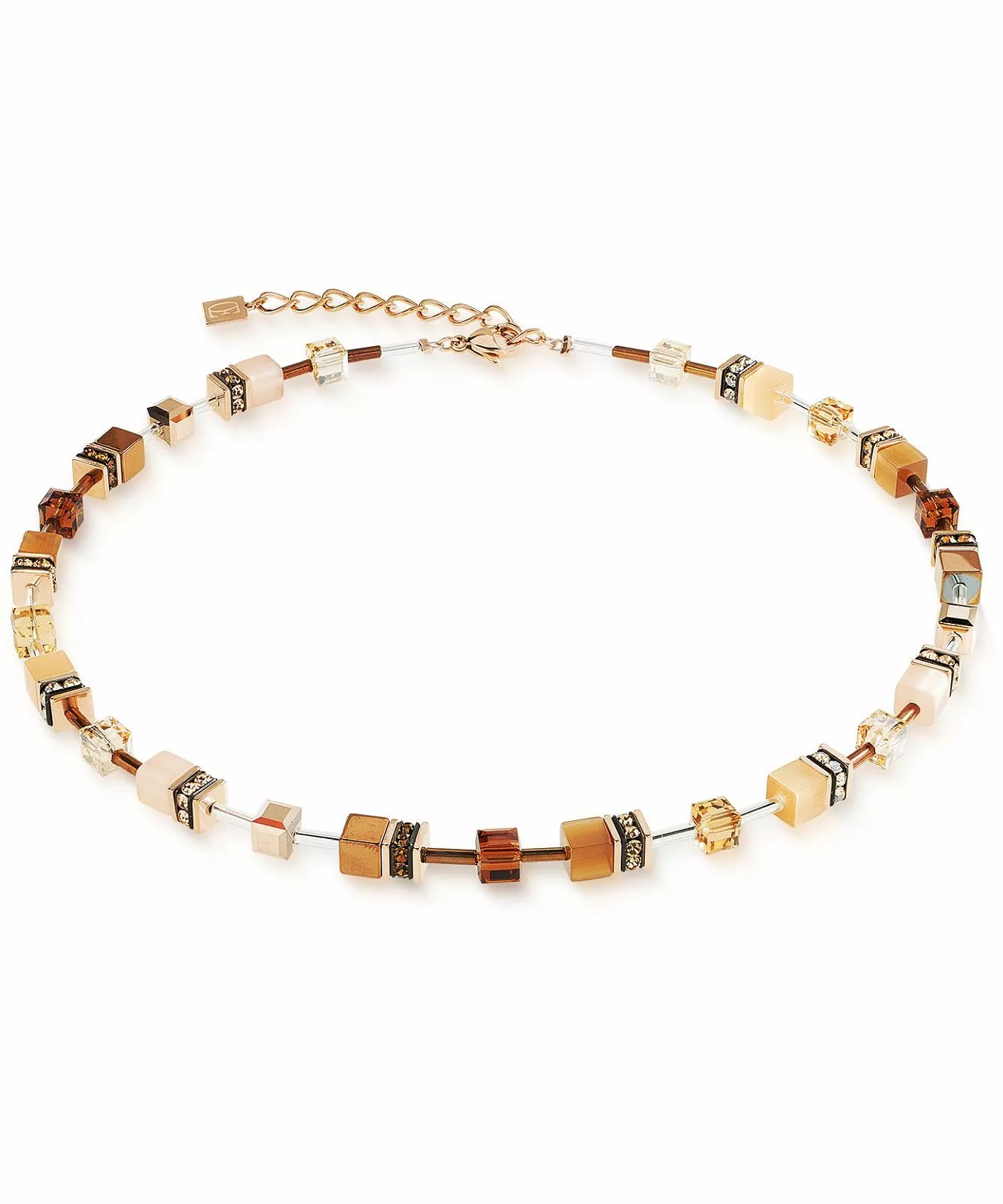 Naszyjnik wykonany jest z kamieni takich jak: tygrysie oko, hematyt, szkło i kryształy. Stal szlachetna jest w kolorze różowego złota. Jego długość to 42 cm + 8 cm przedłużka.