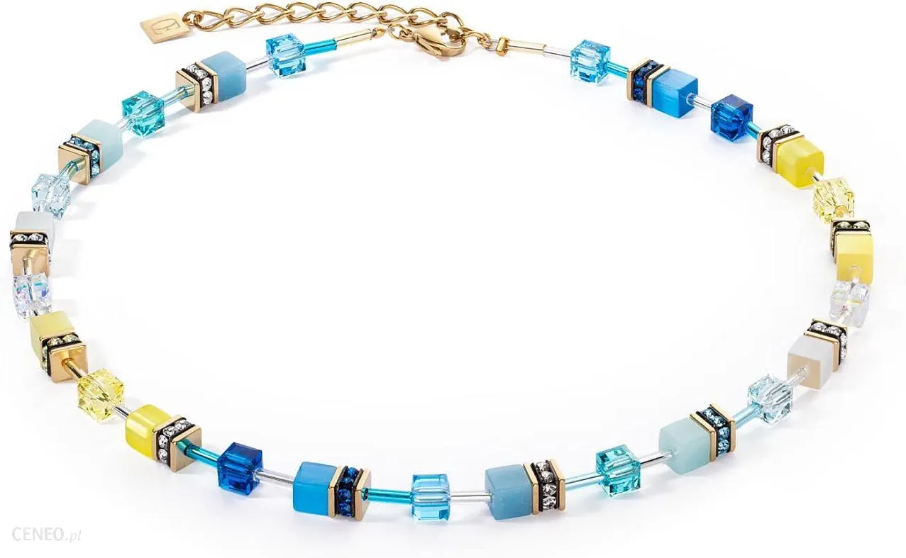 Naszyjnik wykonany jest z kolorowych kamieni naturalnych takich jak kwarc, awenturyn, howlit oraz kryształów i szkła. Stal szlachetna jest w kolorze złota. Jego długość to 42 cm + 6 cm przedłużka.