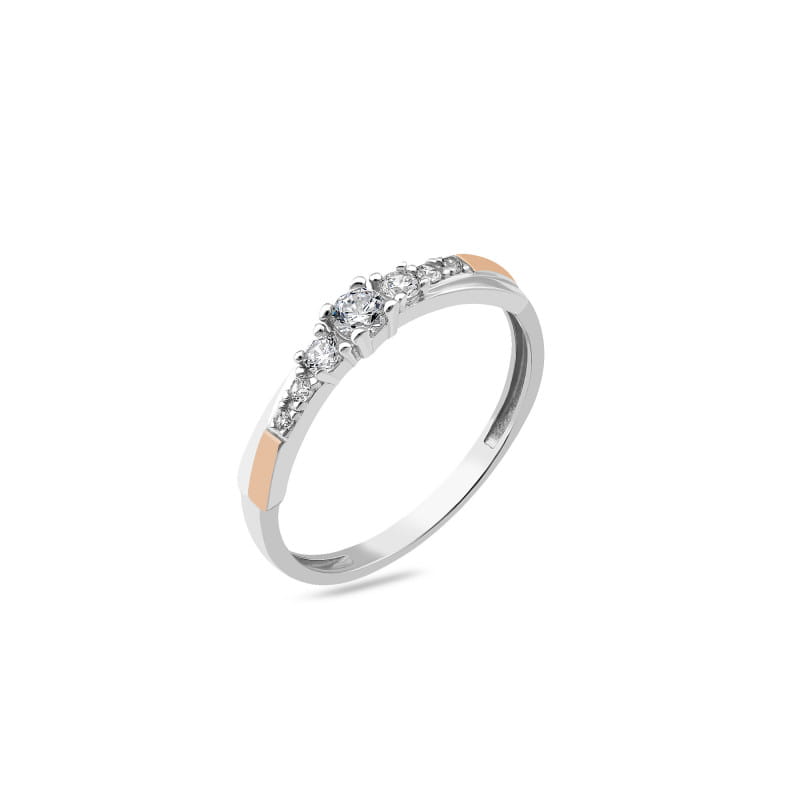 Pierścionek jest wykonany ze srebra rodowanego, płytki złota w próbie 375 oraz cyrkonii.