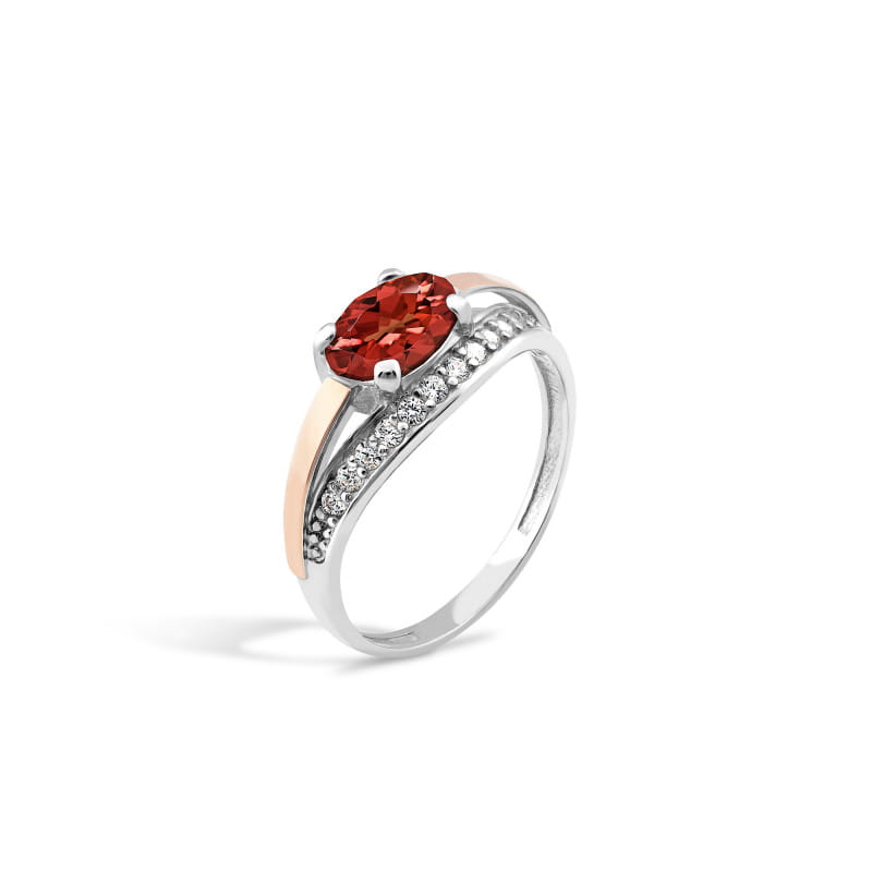 Pierścionek wykonany jest ze srebra rodowanego, płytki złota w próbie 375 oraz cyrkonii.