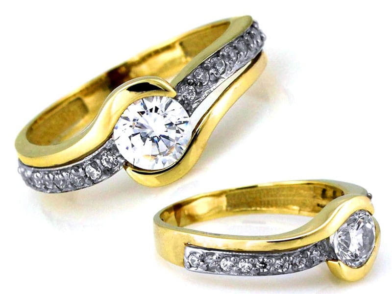 Pierścionek złoty z cyrkoniami wykonany ze złota próby 585