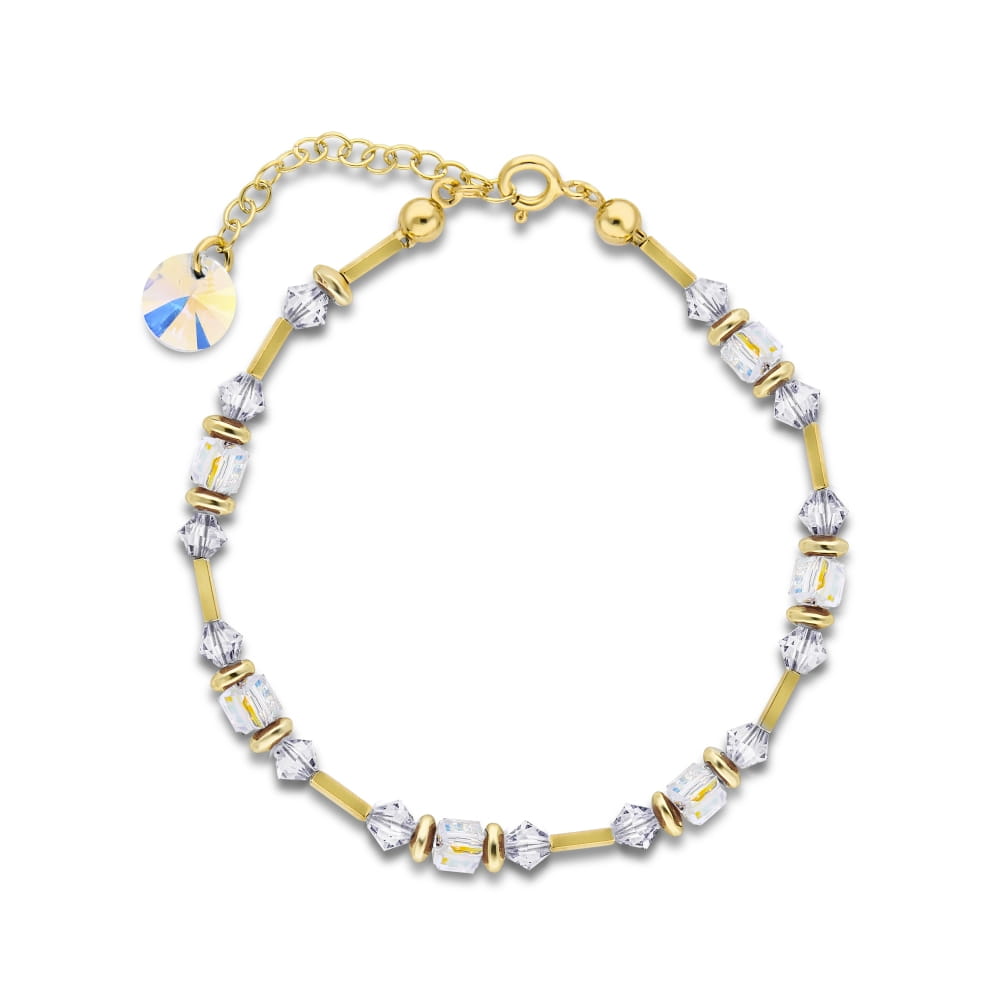 Bransoletka jest wykonana ze srebra pozłacanego próby 925, kryształów austriackich w kolorze Aurore Borealis i Crystal oraz hematytów. Długość bransoletki to 21 cm (17 cm + 4 cm przedłużka). Wielkość kryształów to 0.4 cm.