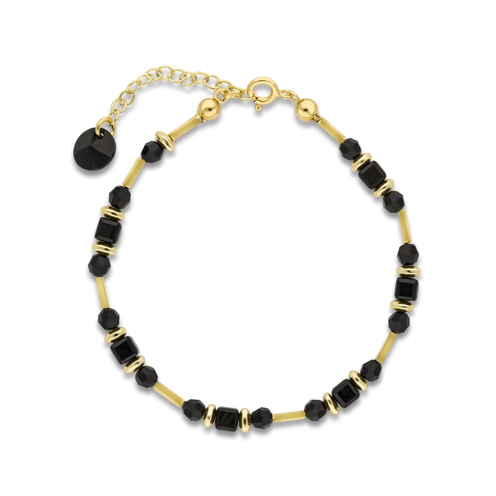 Bransoletka jest wykonana ze srebra pozłacanego próby 925, kryształów austriackich w kolorze Jet oraz hematytów.
