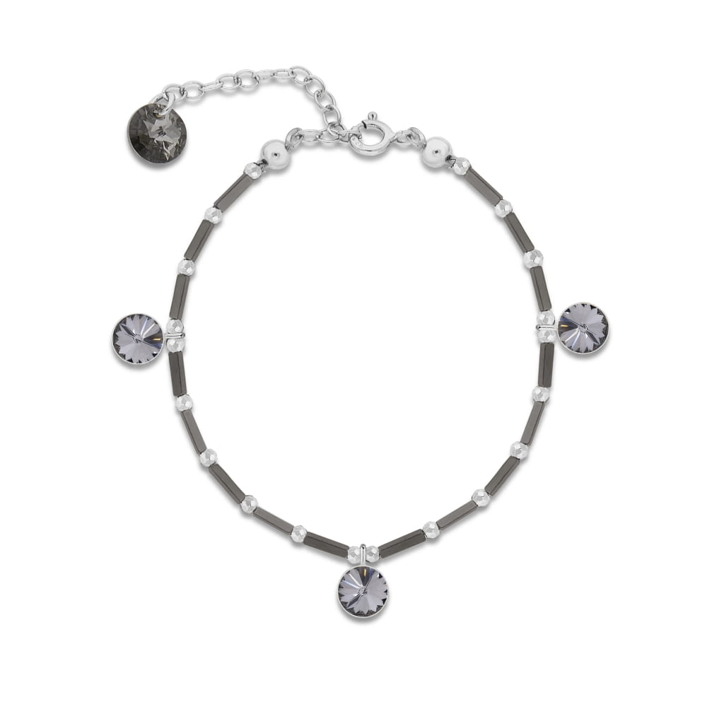 Bransoletka jest wykonana ze srebra próby 925, kryształów autriackich w kolorze Black Diamond oraz hematytów.