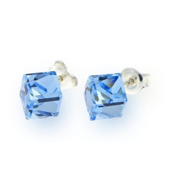 SPARK KOLCZYKI MEDIUM CUBE STUDS AQUAMARINE