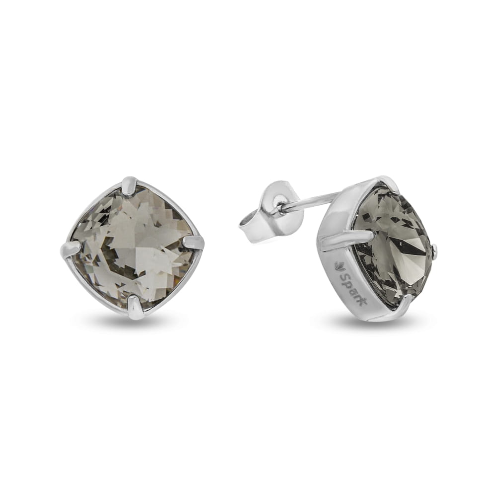 Kolczyki wykonane są ze stali szlachetnej w kolorze srebra oraz kryształów Swarovskiego. Kryształ jest w kolorze Black Diamond o wielkości 1 cm.