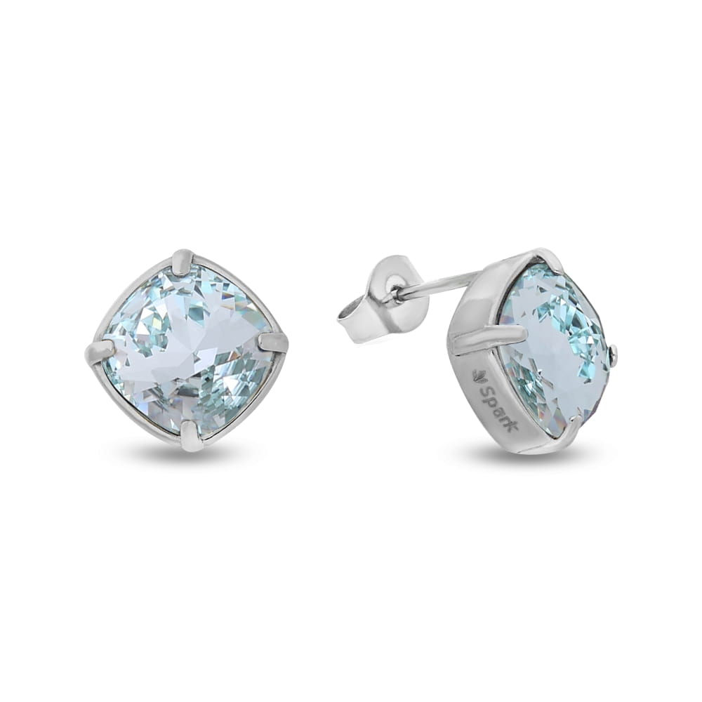 Kolczyki wykonane są ze stali szlachetnej w kolorze srebra oraz kryształów Swarovskiego. Kryształ jest w kolorze Light Azore o wielkości 1 cm.