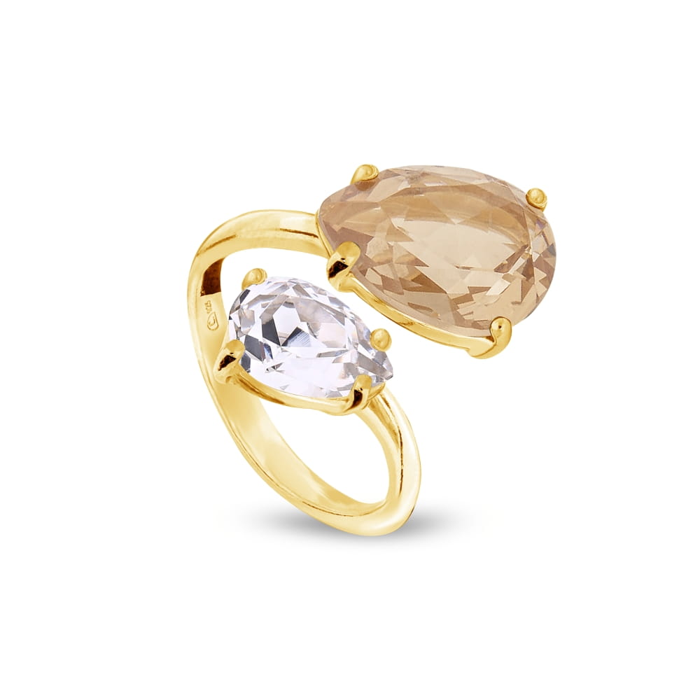 Pierścionek jest wykonany ze srebra pozłacanego próby 925 oraz kryształów austriackich w kolorach Light Colorado Topaz i Crystal.