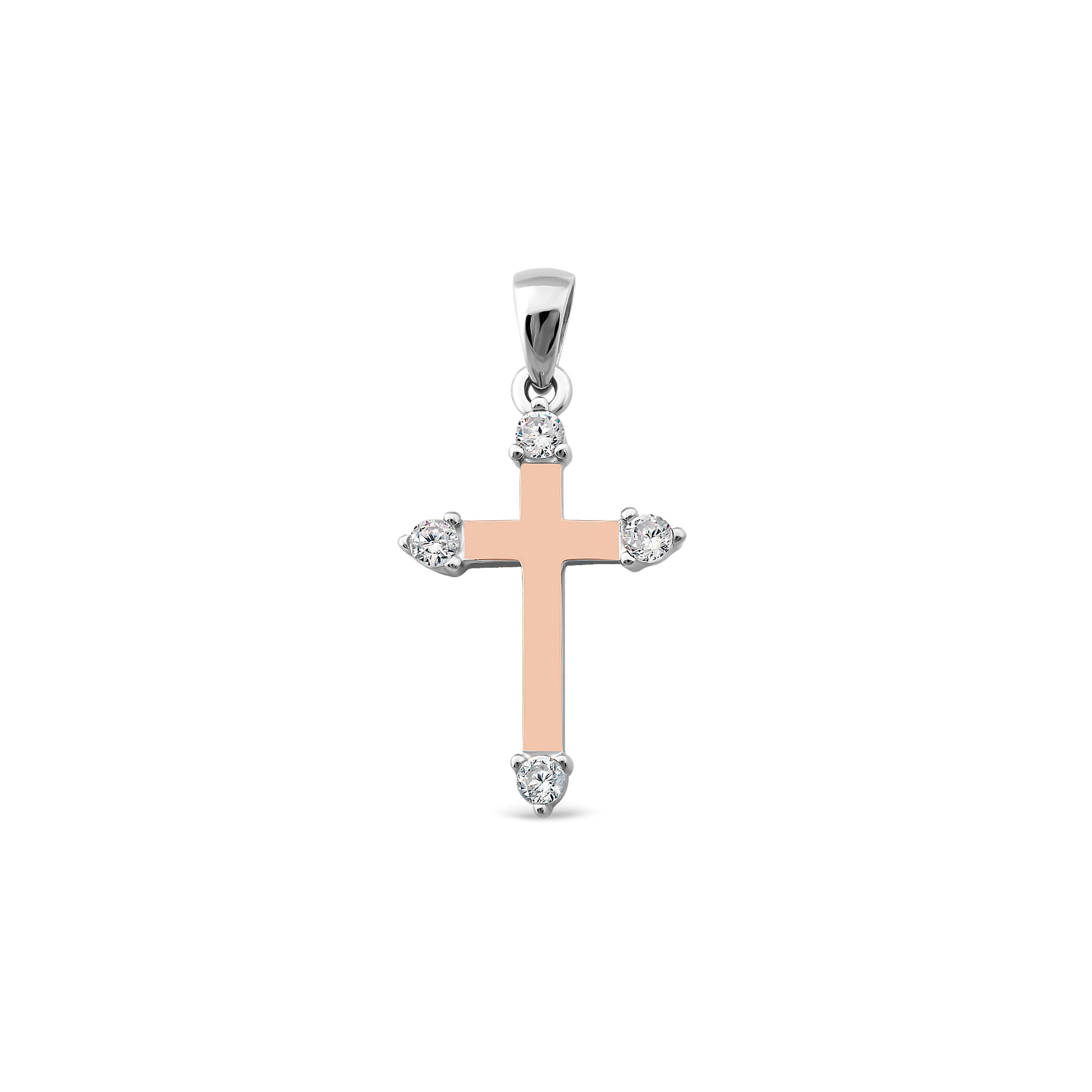 Wisiorek jest wykonany ze srebra rodowanego, płytki złota w próbie 375 oraz cyrkonii.