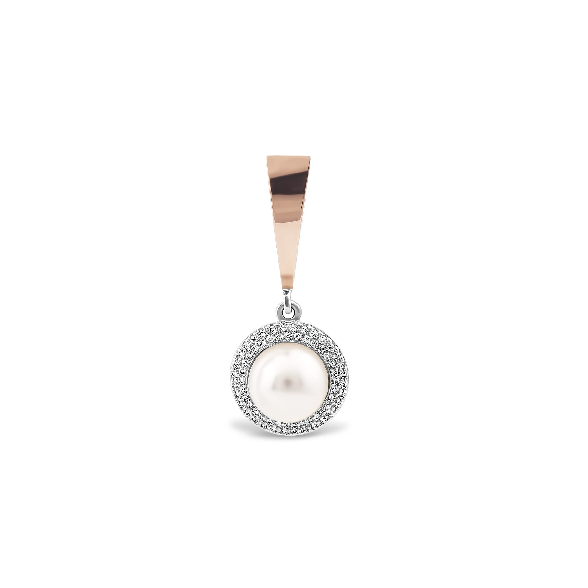 Wisiorek jest wykonany ze srebra rodowanego, płytki złota w próbie 375 oraz perły otoczonej dwoma rzędami cyrkonii.