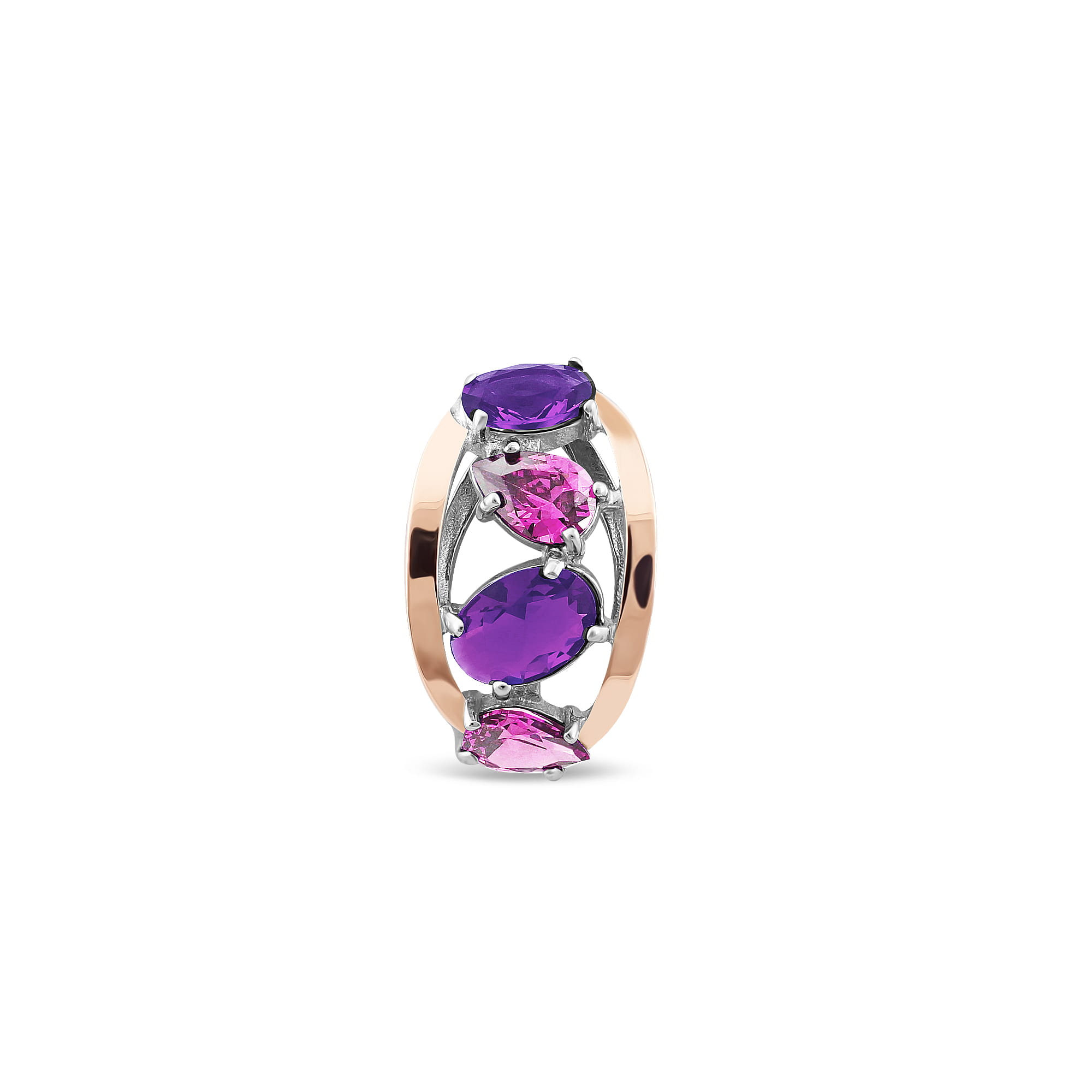 Wisiorek jest wykonany ze srebra rodowanego z dodatkiem złota w próbie 375, ozdobiony cyrkoniami w wariantach kolorystycznych błękitnym, szafirowym, fioletowym, różowym, szmaragdowym oraz oliwkowym.