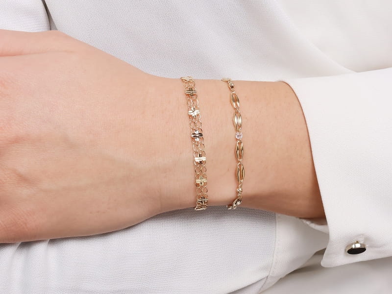 Precyzyjnie wykonana złota bransoletka próby 375.