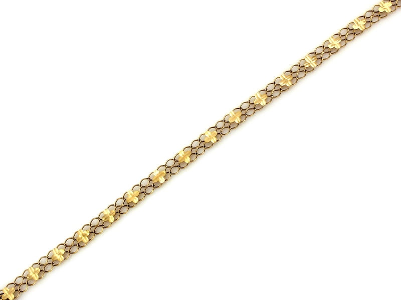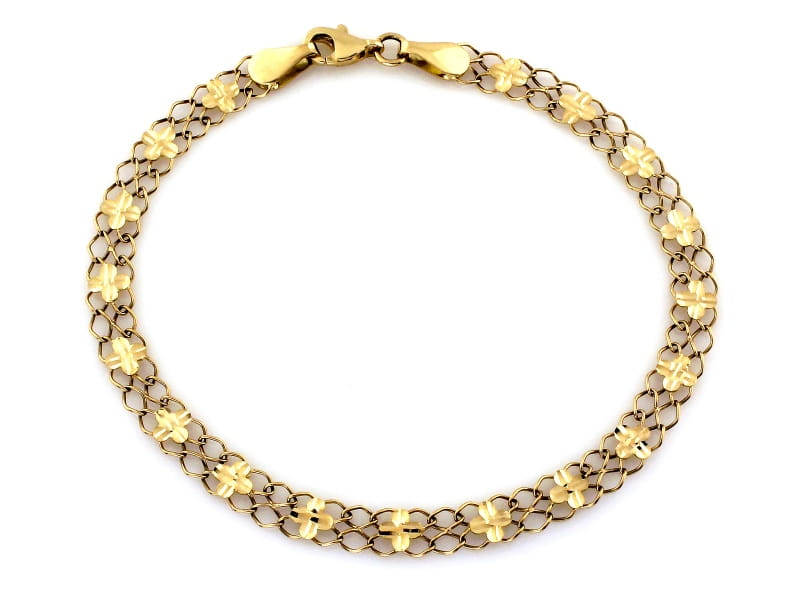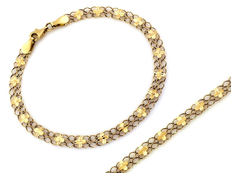Złota bransoletka delikatna ażurowa z frezowanymi koniczynkami