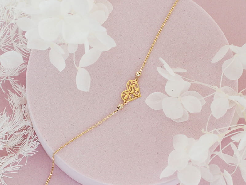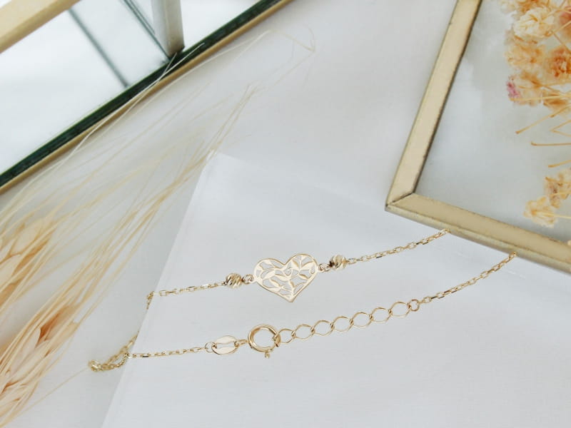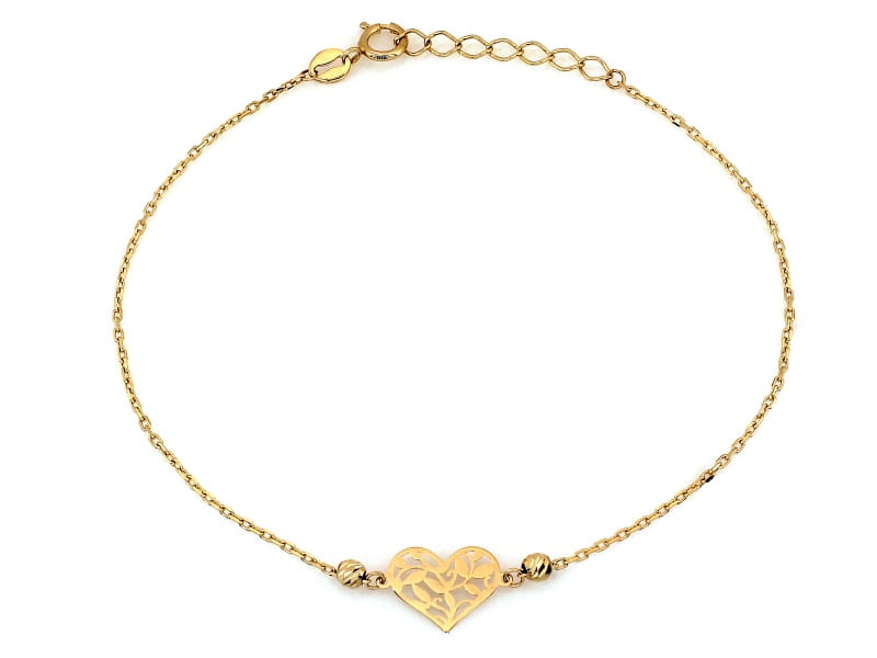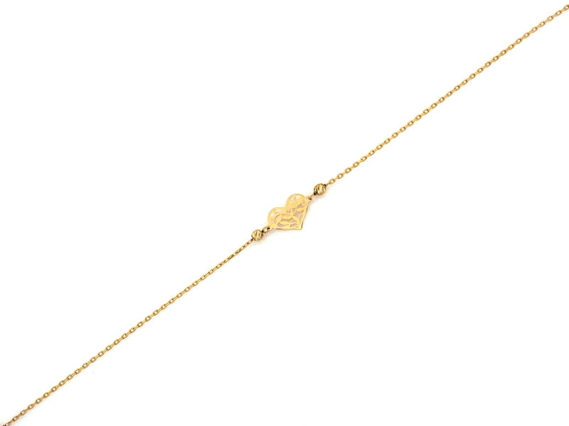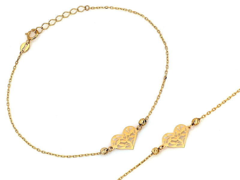 Złota bransoletka z kulkami i ażurowym sercem