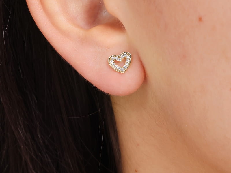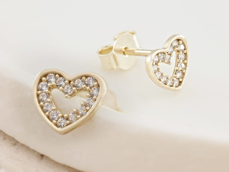Złote kolczyki serca z cyrkoniami sztyfty